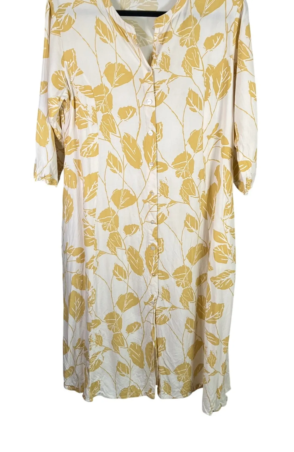 UTSA XXL Viscose Dress Cream Yellow Floral Leaf Print Midi Casual Measurements: • Pit to pit: 21 inches • Sleeve length: 17 inches • Length: 42 inches Style: Shirt Dress, Sundress Dress Length: Midi Color: Yellow Department: Women Sleeve Length: 3/4 Sleeve Pattern: Floral Occasion: Casual, Travel Material: Viscose Neckline: Collared Character: Bohemian, Casual Chic, Summer Fabric Type: Rayon Season: Summer, Spring Sleeve Type: Kimono Sleeve Closure: Button Keywords: UTSA dress, XXL dress, Viscose dress, Cream dress, Yellow dress, Floral dress, Leaf print dress, Midi dress, Casual dress, Bohemian dress, Summer dress, Button down dress, Plus size dress, Womens dress Ships fast from a smoke and pet free home.