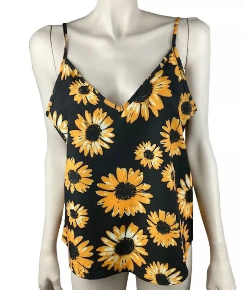 Shein brown and gold daisy print tank top Materials: 92% polyester, 8% elastane Excellent conditio... Show more