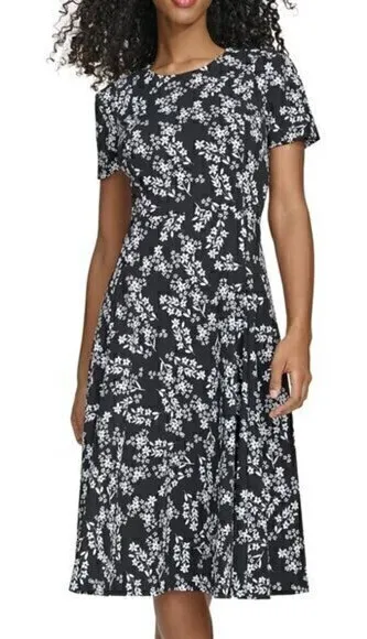 Calvin Klein. Floral-Print Scuba-Crepe Midi Dress. Size: 2 Color: Black and White Brand new with... Show more