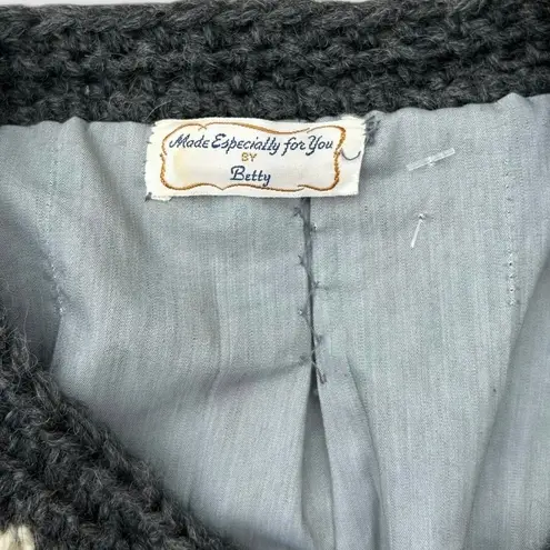 Beautifully crafted and cozy, this hand-knit cardigan features wide horizontal stripes in shades of charcoal gray, cream, and soft gray. The textured knit pattern adds depth and warmth, while the three large marbled buttons give it a rustic, artisanal touch. This mid-length sweater has a flattering, slightly fitted shape — perfect for layering over jeans or leggings. The open neckline and neutral palette make it a timeless, versatile piece for fall and winter. Details: • Size: Small (No Size tag, but see measurements below) • Condition: Excellent preowned – no flaws noted • Colors: Charcoal gray, cream, and gray stripe pattern • Features: Chunky textured knit, marbled buttons, handmade quality • Material: Wool or wool blend (based on texture and appearance) • Style: Hand knit cardigan / artisan sweater / cottagecore layering piece Measurements: Chest: 18" armpit to armpit Length: 33" Sleeves: 30.5" from base of collar Style Keywords: boho chic, cottagecore, hand knit, artisan made, striped sweater, chunky knit cardigan, neutral tones, winter layering, Scandinavian style, handmade clothing, minimalist knitwear, hygge style cozy cozycore lagenlook