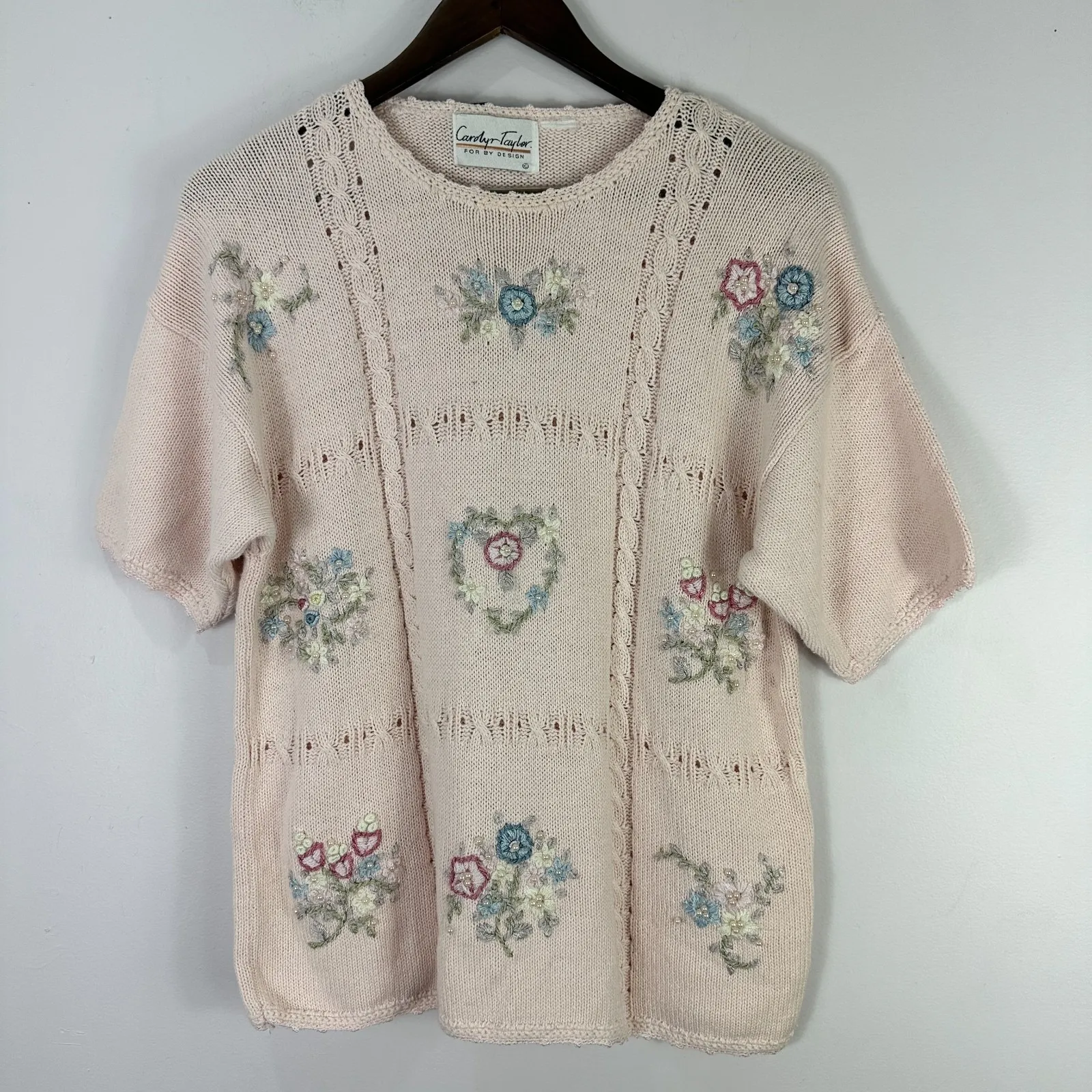 Vintage Carolyn Taylor Embroidered Floral Top Pink Knit Cottagecore Soft Girl Description: Vintage... Show more