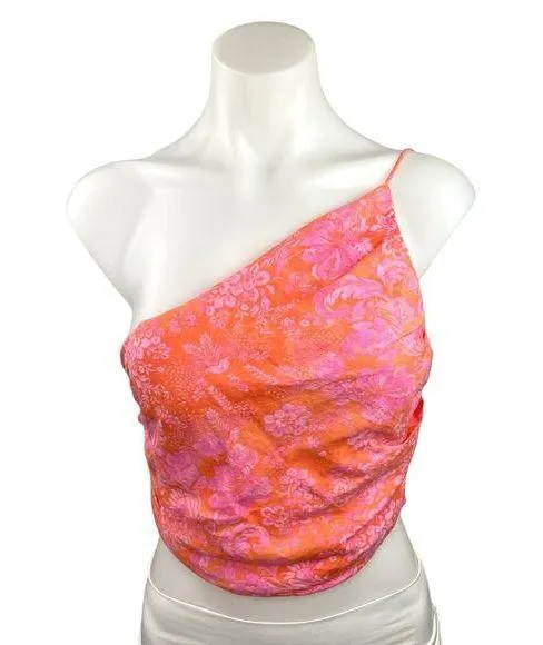 Zara Orange Pink Multicolor Floral Print One Shoulder Linen Blend Spaghetti Ruched Summer Beach Casu... Show more