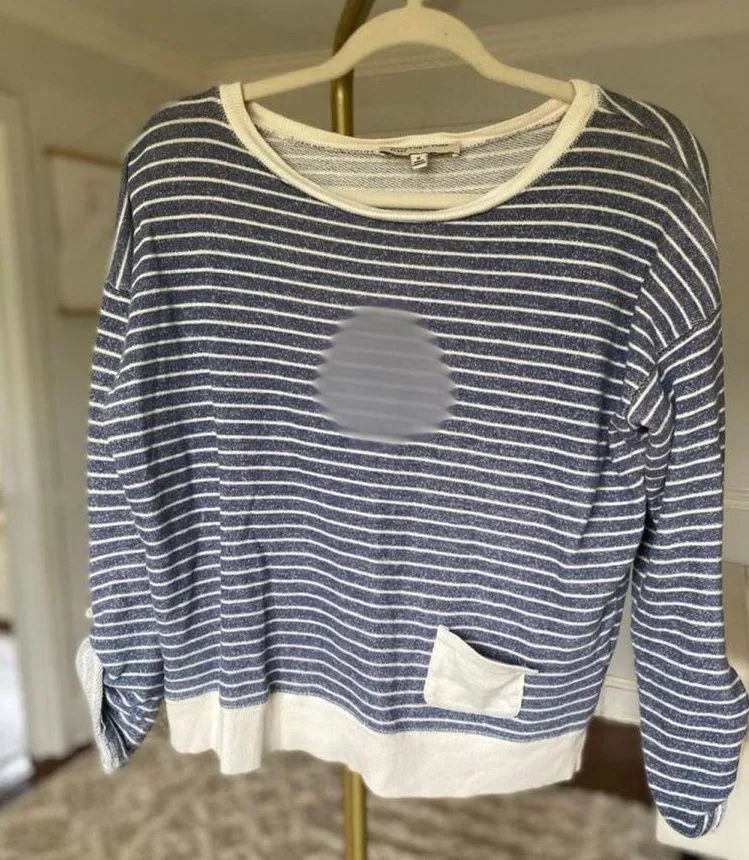 Jones New York Sport Blue White Striped Cotton Pullover Top with Pocket M