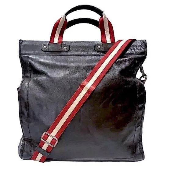 BALLY Brown Calfskin Tote Bag w Striped Top Handles and Adjustable Crossbody Striped Strap BALLY Rich Brown Calfskin Top Handle Crossbody Messenger Shoulder Bag UNISEX BALLY Oversized Top Handle Bag Supple Brown Calfskin Leather Adjustable Red and White Stripe Strap Top Handles Firmly Riveted On Secure Magnetic Closure Interior Zipper Pocket Black Lining with Red and White Stripe Accents Impeccable Condition without Stains, Holes, or Tears Made In Switzerland Photos of Measurements Are Available In The Slides Measurements Taken Flat By Hand- All Measurements Are Approximate and May Vary +/- 2” Height: 15 inches tall Width: 14-1/2 inches wide Depth: 5-1/2 inches deep Strap: 37 inches long Color May Vary Based On Shadows, Lighting, Monitor, Display Settings Ask Questions and/or Request Additional Photos, Measurements As Needed