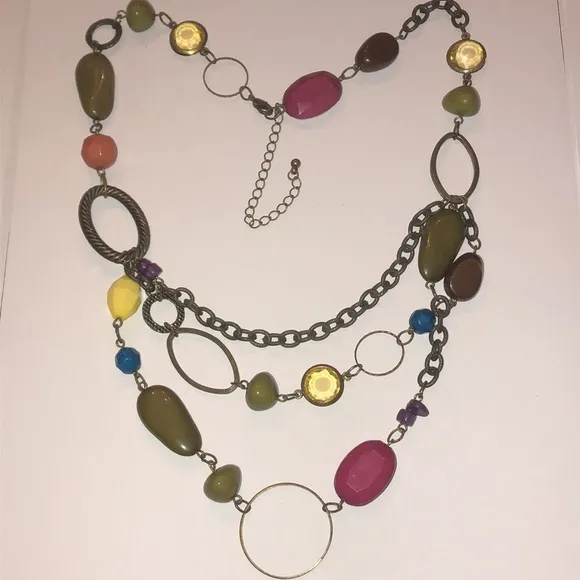 Brass Tone Colorful Multi Strand Beaded Boho Necklace - $10 - From Vault