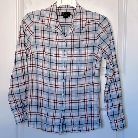 Pendleton Plaid Linen Blend Button Down Shirt Small Blue - $30 - From Rachael