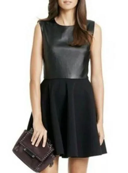 Diane Von Furstenberg Jeannie Sleeveless Leather Combo Mini Dress Black Womens 6
