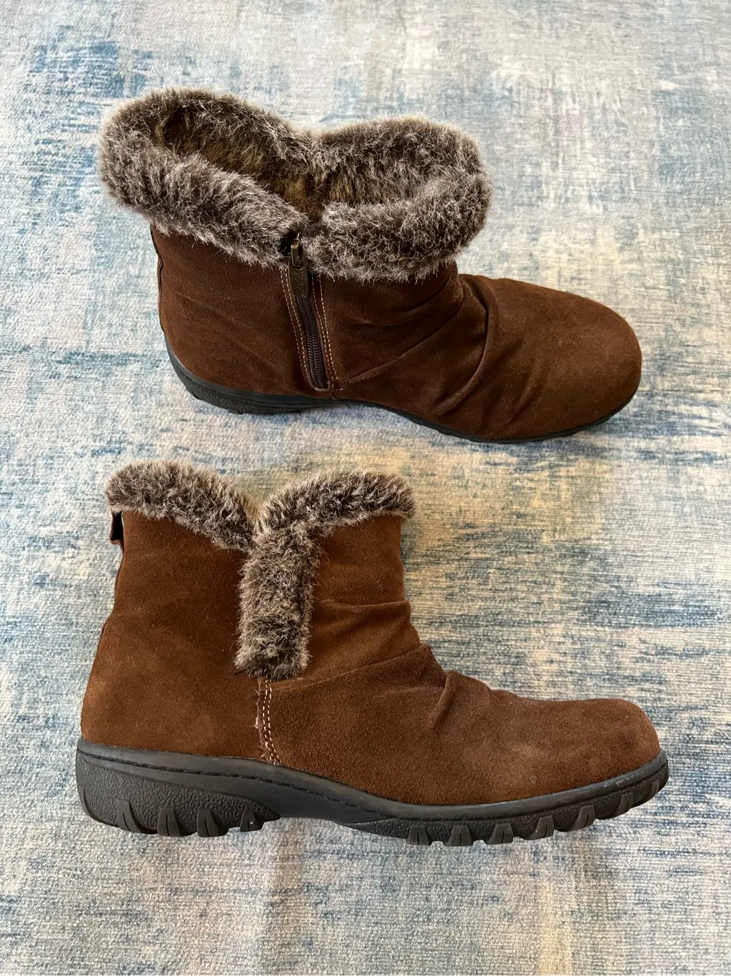 Khombu Brown Faux Fur Suede Leather Lisa All Weather Snow Boots Size 11 Khombu's Lisa boots sport supersoft brushed-leather uppers and cozy faux-fur lining for a stylish and warm option all winter long. Side zip. Gently used. Women's size 11 GS