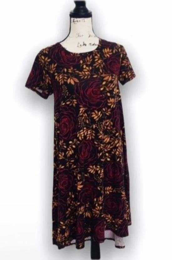 LuLaRoe rose patterned Carley dress Gold Size XS - $63 - From Travel