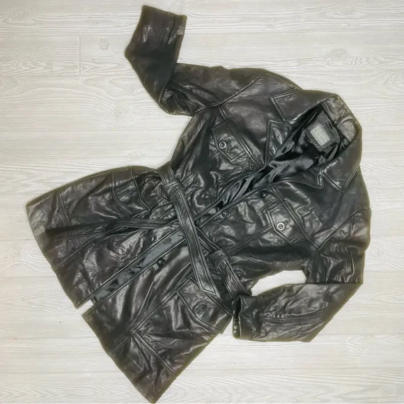 Black vintage guess leather belted jacket with pockets long sleeve winter coat L Size L - $114 (42% Off Retail) - From Sara
