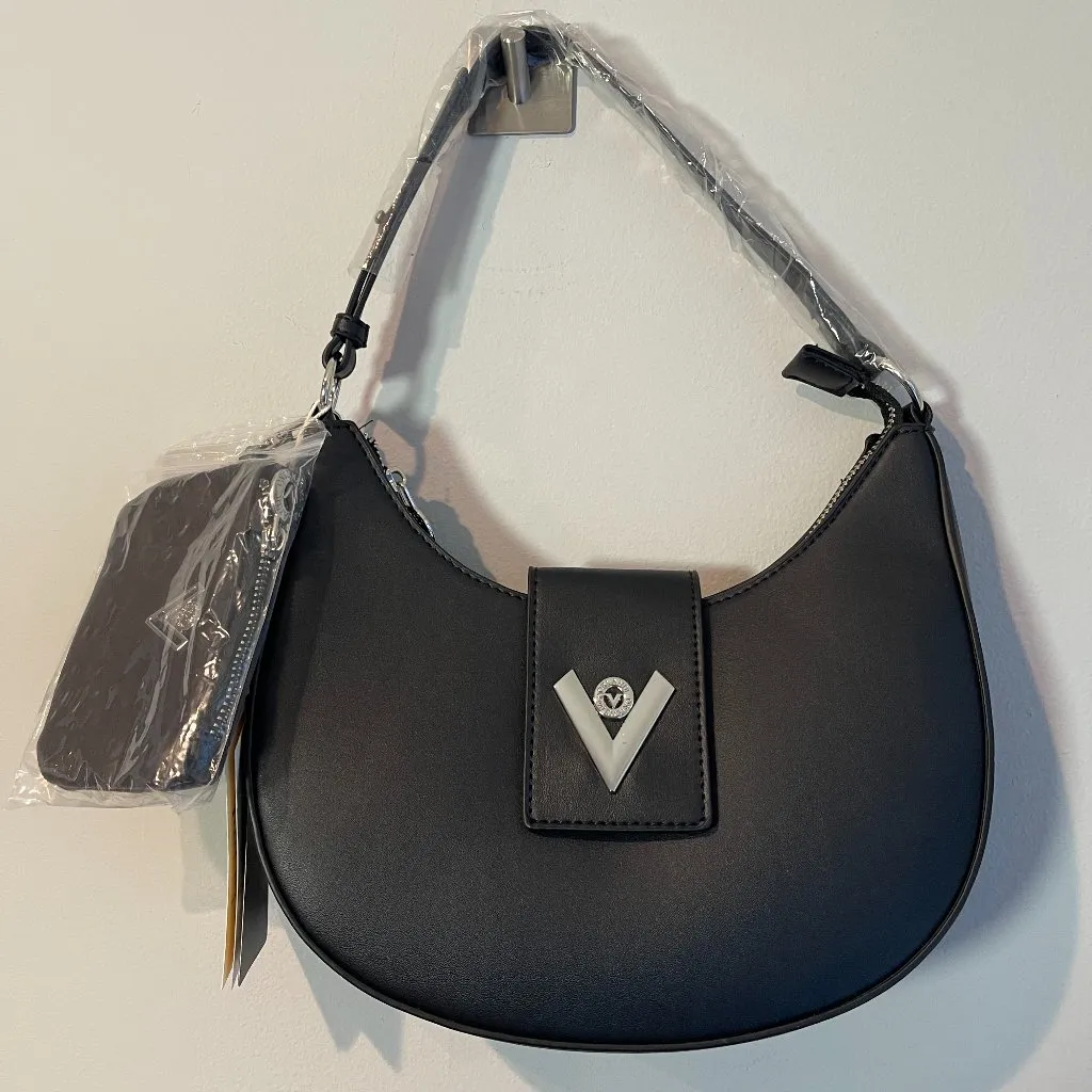 From Valentino Orlandi: The Valentino Orlandi Crescent Shoulder Bag epitomizes refined luxury with its graceful curved silhouette and impeccable craftsmanship. Constructed from premium materials. Silvertone hardware Detachable Crossbody Strap Detachable Pouch Measurements: 10.25" L x 8.5" H x 2.5" W Vegan Leather Designed in Italy, made in China.