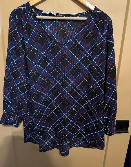 Valerie Stevens blouse plaid tartan blue black red size L Size L - $10 (87% Off Retail) - From Kimmi