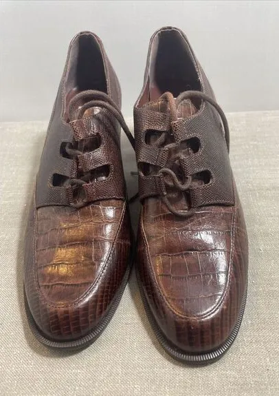 Valerie Stevens 6 1/2 leather lace up stacked heel shoe. The defect looks like on the back sole had some light impression marks. If you have any questions or need additional pictures, please ask.