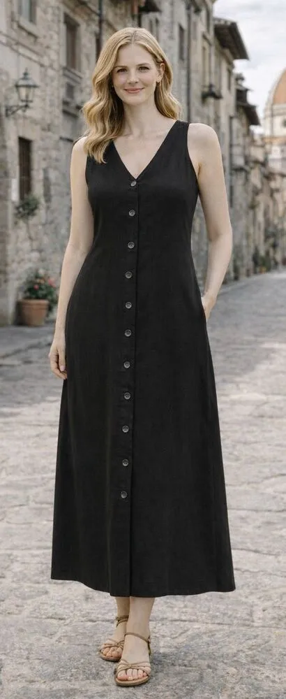 Brand: Valerie Stevens Description: petites vintage 100% linen vneck button front midi dress with snap closure at bust Size: 12 petite Color: black Condition: Gently Worn Very Good šš» Measurements: Pit to pit: 20ā Length: 51ā **Bundle and Save!!** all measurements are approximate and taken laying down A13