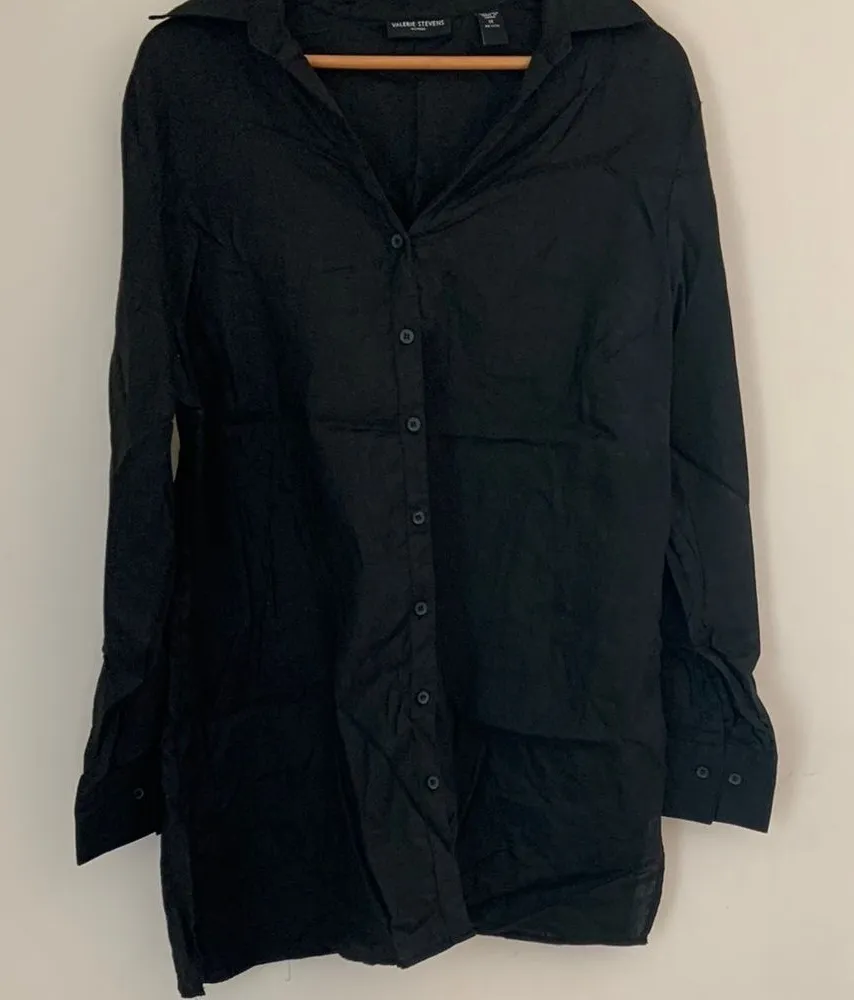 Valerie Steven’s Woman Sz 1X 100% Linen Black Casual Button-Up Shirt Great preowned condition No v... Show more
