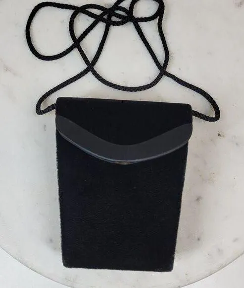 Valerie Stevens Cross Body Bag Small Black Velvet Braided Strap Make-Up Cigarette Measurements: 4"... Show more