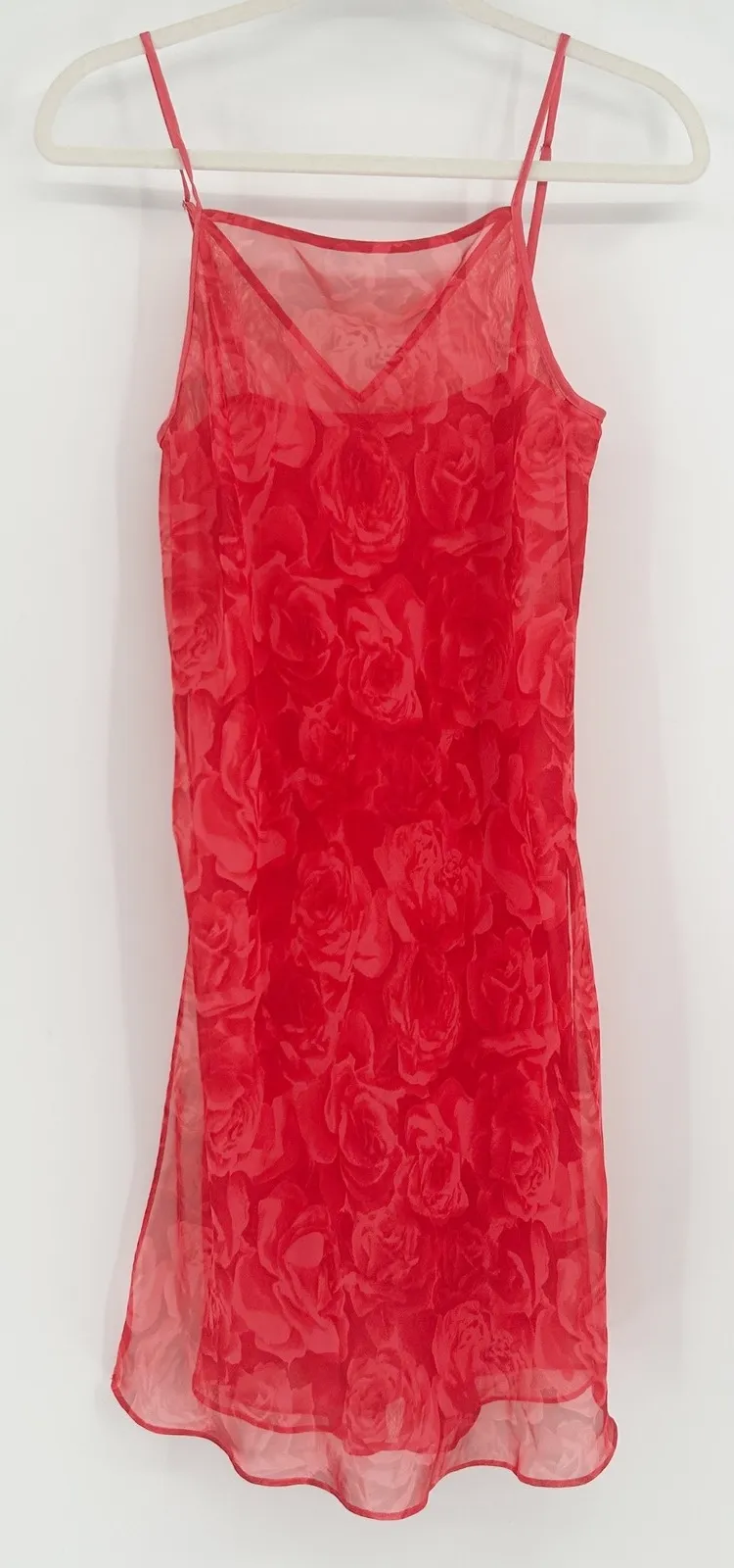 Valerie Stevens Womens Y2K Vintage Floral Rose Print Chiffon Slip Dress Size Small in Red Good preo... Show more