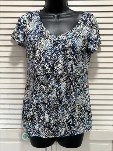 This Van Heusen blouse is a versatile addition to any wardrobe. The blue, white, and black snake pat... Show more
