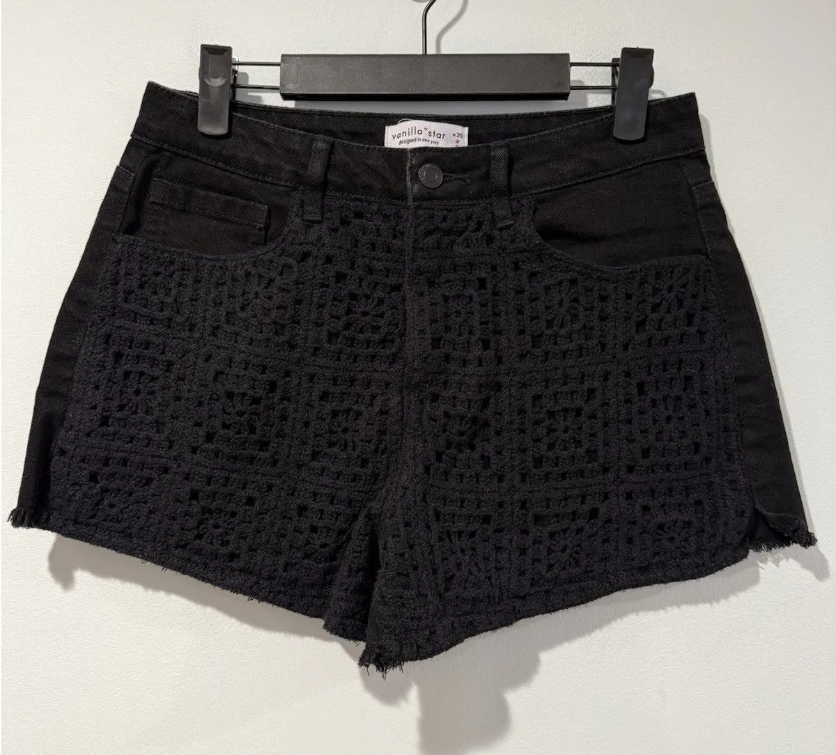 Vanilla Star Shorts Womens 28" Black Crochet Festival Boho Vacation Hippie Indie · Size Tag says 26... Show more