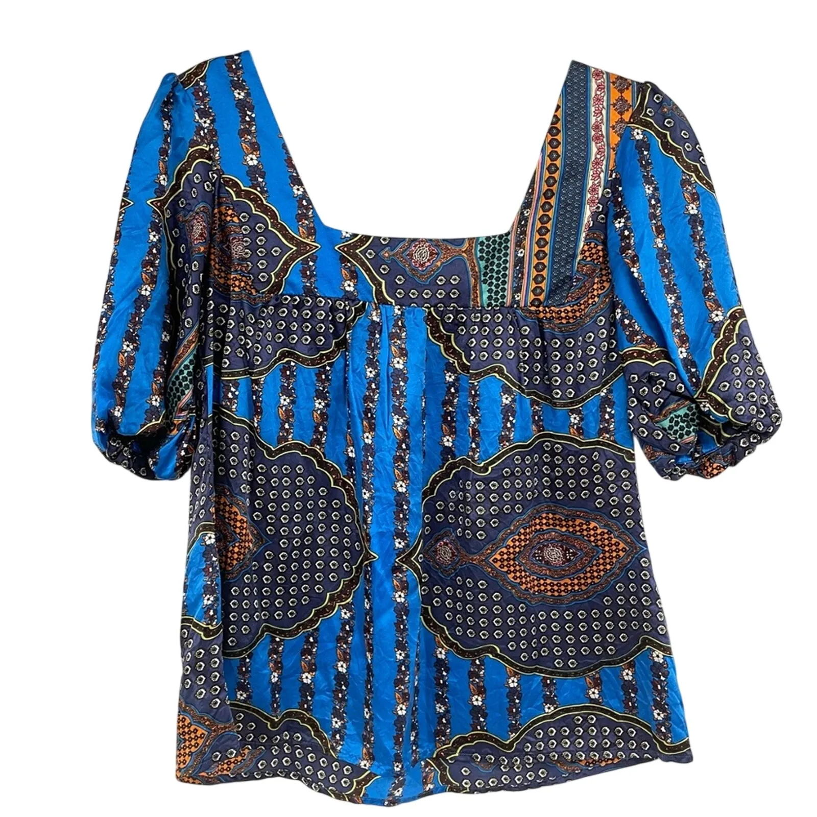 Vanitas Of California Blue Silk Boho Square Neck Blouse Womens XS Shirt Festival - $30 - From Lisa