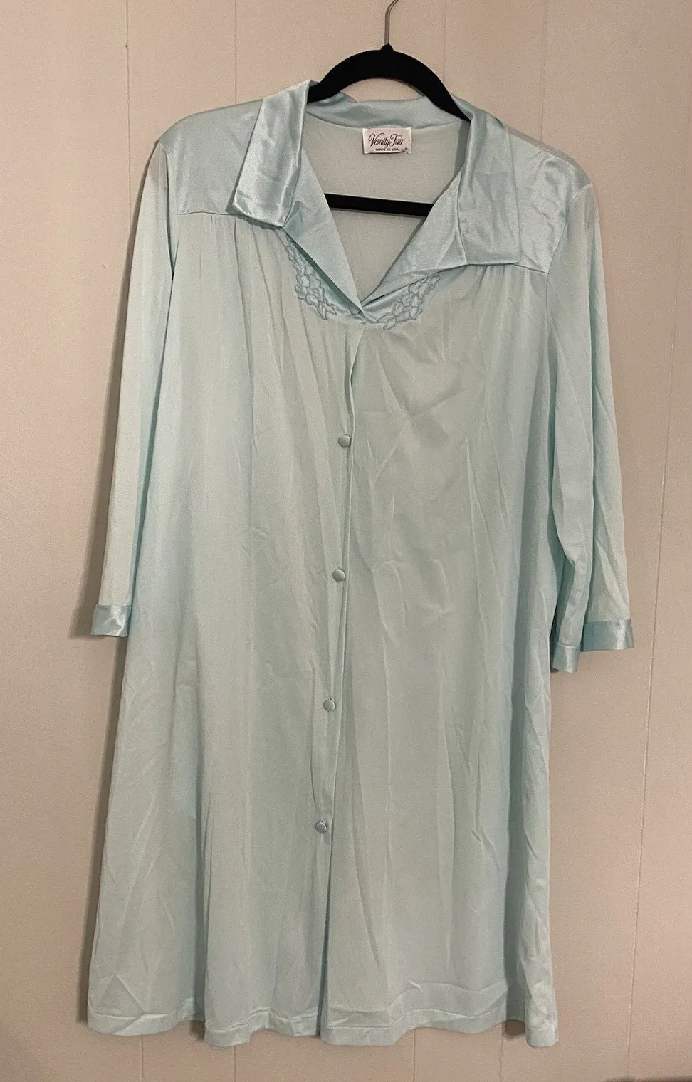 Vanity Fair‎ Moo Moo Nightgown Baby Blue Flower Detail Button Down Front Large - $12 - From Sarah
