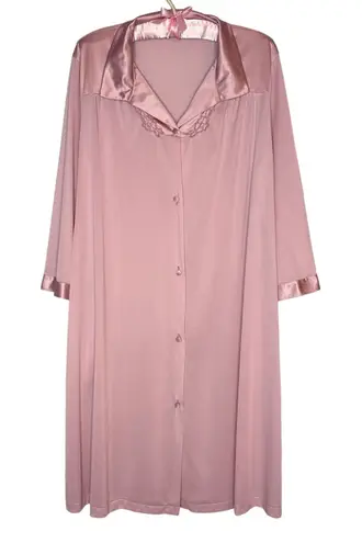 Vintage Vanity Fair button-up house robe / nightgown in a soft dusty rose pink nylon. Made in the US... Show more