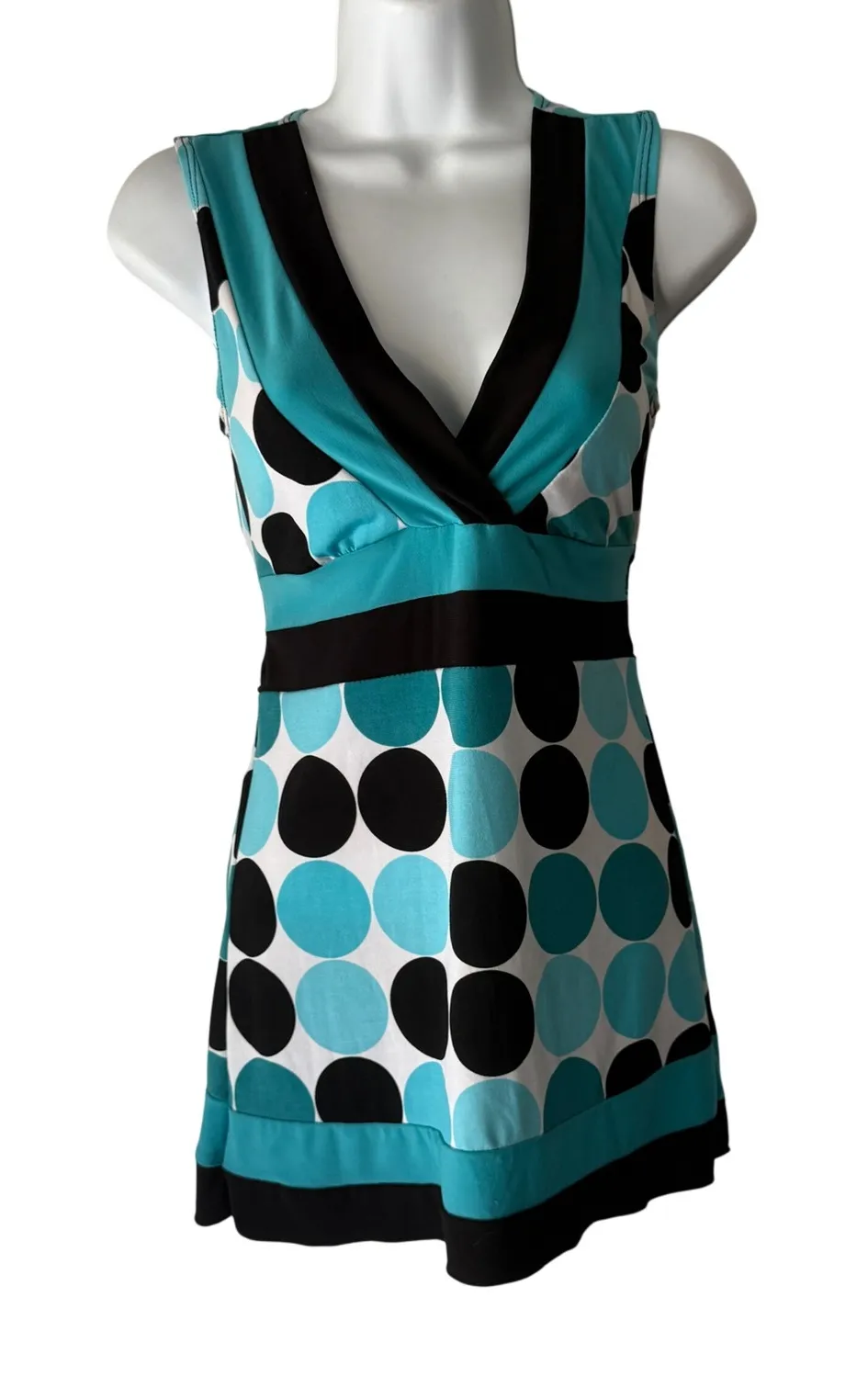 Vanity Y2k Sleeveless Mini Dress Teal Black White Polka Dot Party Going Out Top Style: Mini, Tank D... Show more