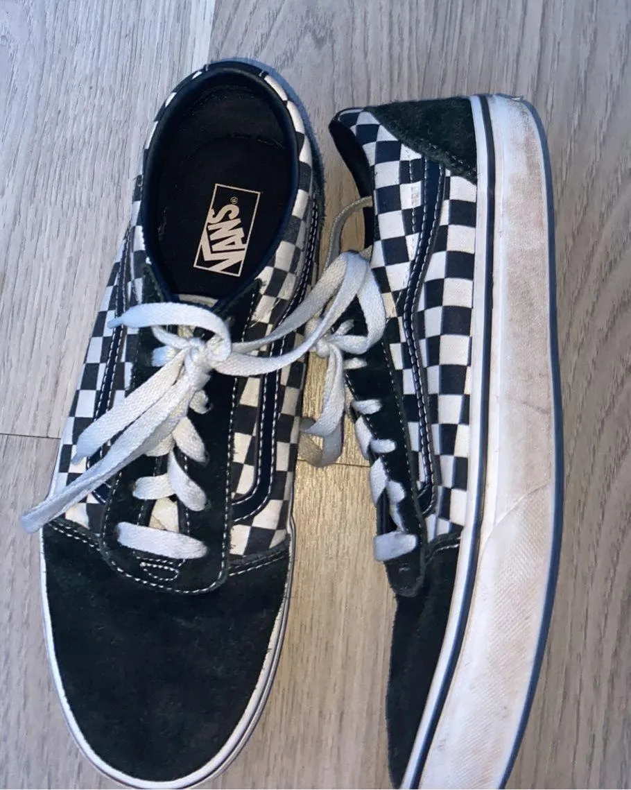 -black and white with vans stripe tie on shoes -been worn a couple times but can barely be noticed u... Show more