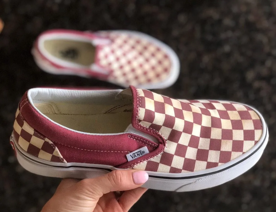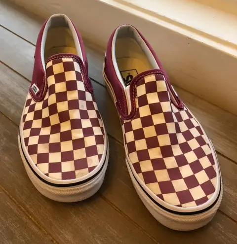 Shipping is included in price! Burgundy Checkerboard Vans! Very clean bottoms and seams. The fabric... Show more