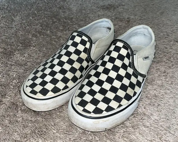 Used checkerboard slip on vans Still in very good condition, just dirty but no holes or wear and tea... Show more