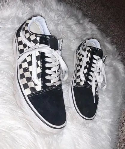 Old skool vans. Worn couple of times in good condition not dirty. Tread all intacts no lifting. Cute... Show more