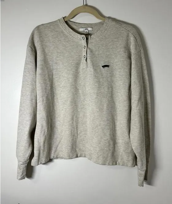 VANS Crop Long Sleeve Shirt 3 Snap details Oatmeal Unisex Size M Cotton Good Pre-owned Condition w... Show more