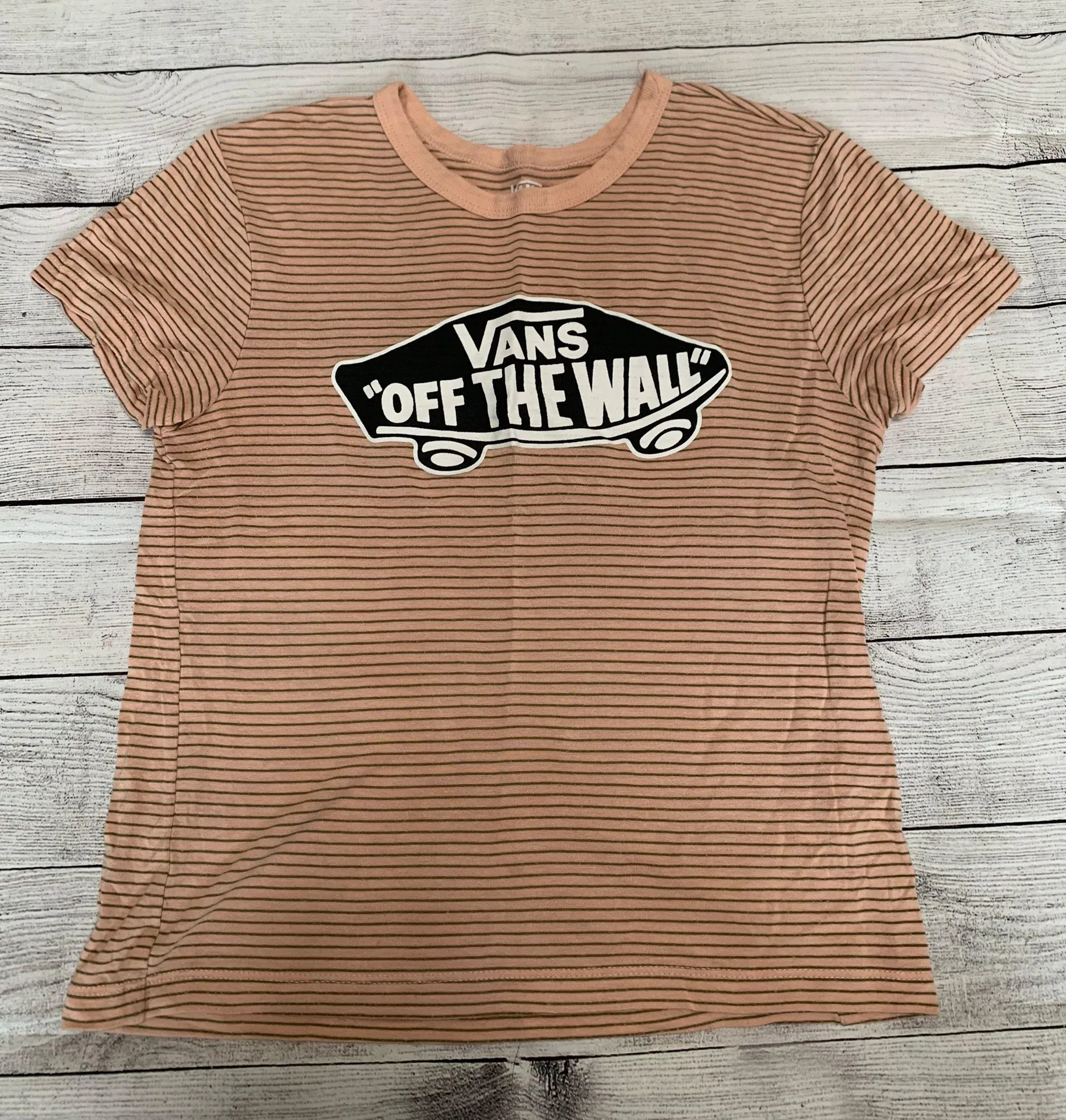 Vans t shirt crop top, light pink with dark green stripes. Size extra small, great condition!
