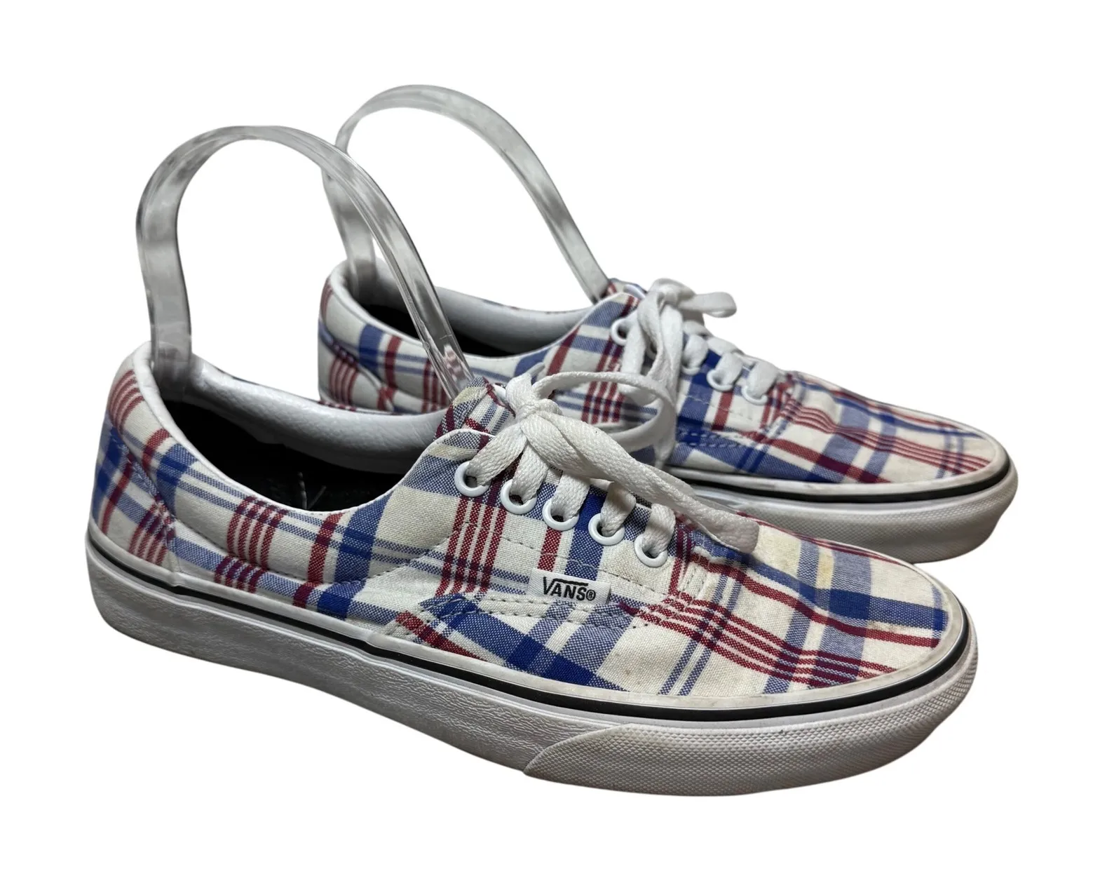 Keywords: Vans Era, Plaid Sneakers, Low Top, Canvas Shoes, Women's Sneakers, Men's Sneakers, Red Blue White, Casual Footwear, Skate Shoes, Fashion Sneakers, Comfortable Shoes, Everyday Wear, Unisex Sneakers