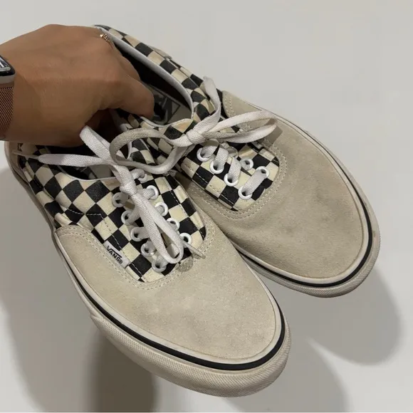 Good condition Wear shown in photos Van brand Era Primary cream and black checker style shoe. Su... Show more