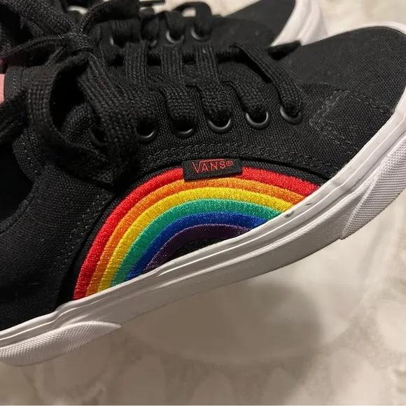 Good to very good preowned condition Black Canvas with embroidered rainbow on the side Hardly any we... Show more