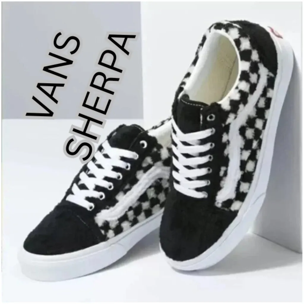 Stylish Vans sneakers with a black and white checkered pattern. Comfortable and trendy design. Vans... Show more