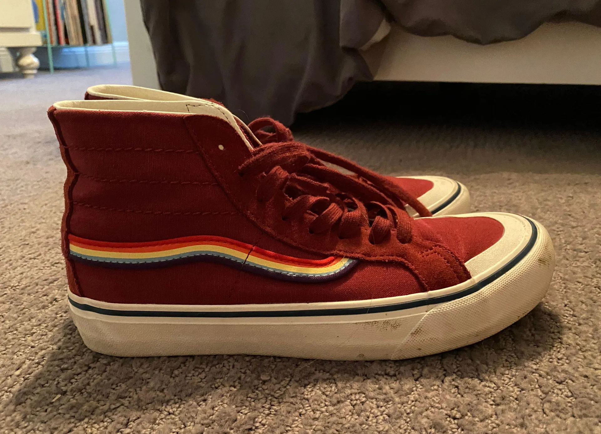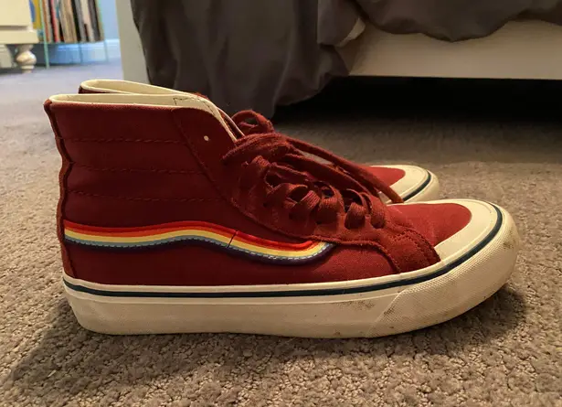 Super cute rainbow striped high top Vans only worn a few times, basically new!