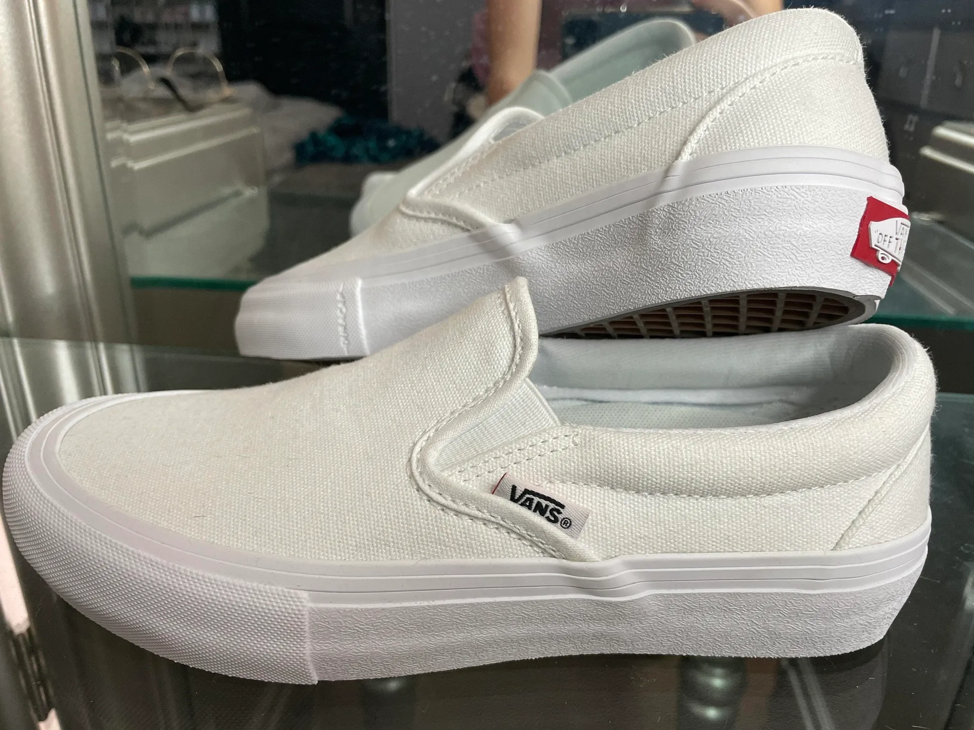 All white UltraCush PRO slip on vans. Brand New never worn. They were a gift to be but I do not like... Show more