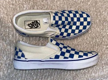 Perfect condition! Only ever worn once. Vans blue checkered slip-ons Size: women’s 6.5