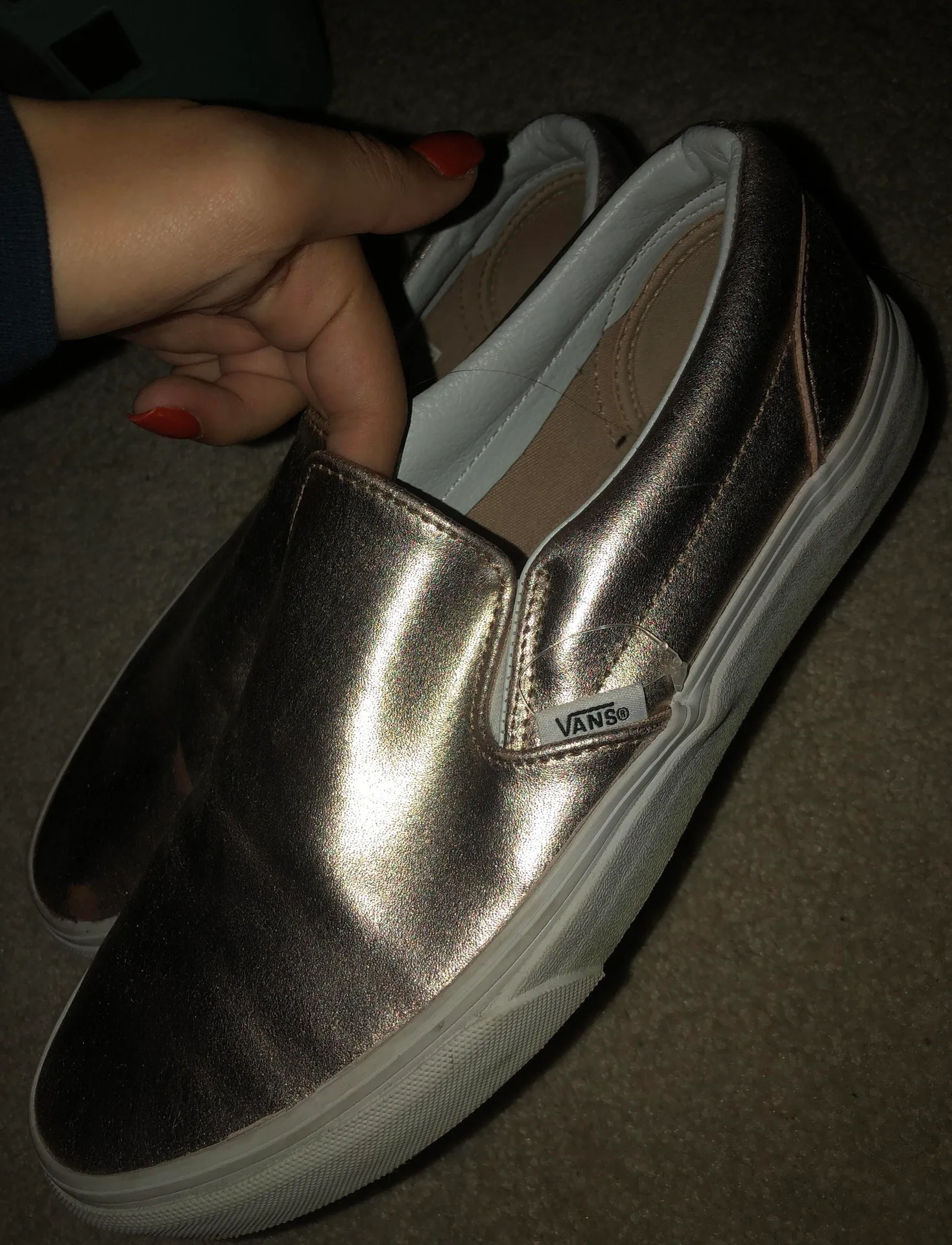 Rose gold metallic van shoes!! Worn twice. Two small smudges on the front of the right shoe. Fit per... Show more