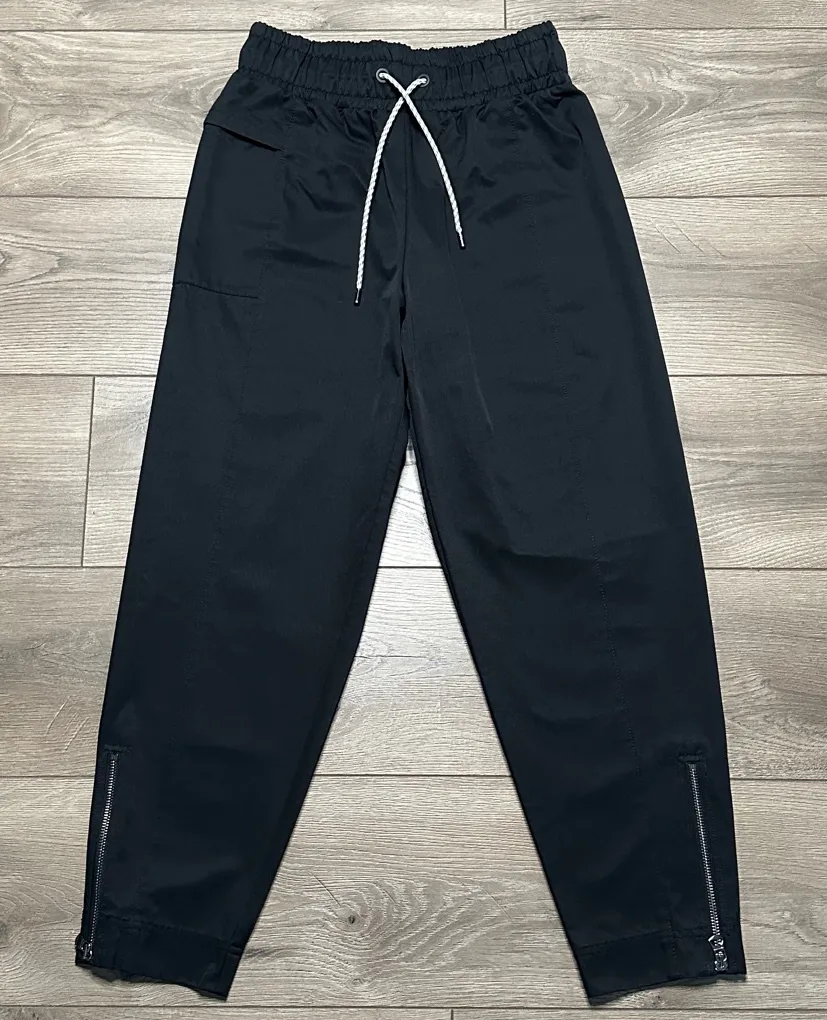 Varley Eastwood Cargo High Rise Jogger Pants Size Small Black Size Small. Excellent condition! 80% polyester/20% cotton. Twill fabric with a sheen. Zippers at ankles. Elastic waistband with outside drawstring. See pictures for measurements