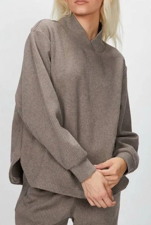 Varley Ellington V-Neck Brown Ribbed Sweatshirt Cotton Blend XL #762 Tan - $60 - From Melissa