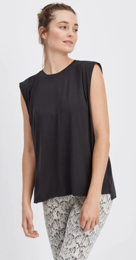 Varley Tencel Muscle Tank medium‎ athleisure workout yoga layered classic travel Black - $45 - From Tara
