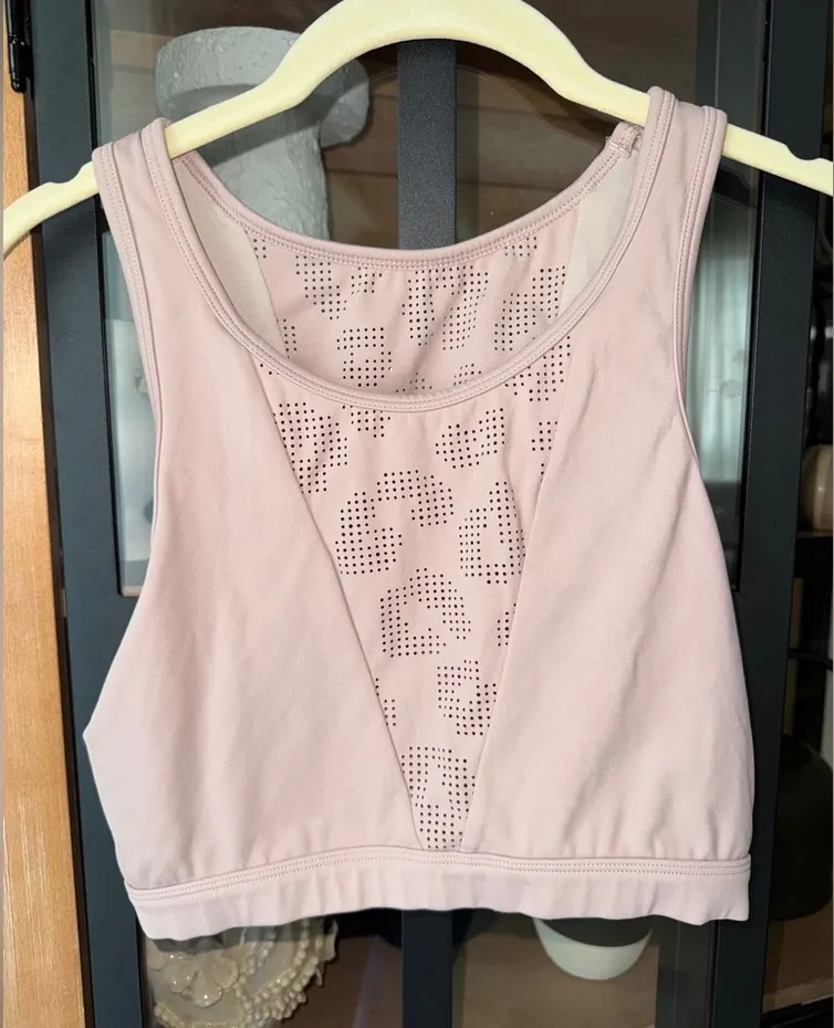 Size small Color: deauville blush mauve pink purple taupe Round neck, sleeveless, elasticized hem Front and back laser-cut cheetah-pattern insets Letelux four-way stretch compression fabric Cropped silhouette, partially lined, pullover style