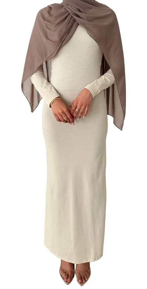 Our signature body dress is made from a stretch cotton jersey fabric and designed to a form fitting silhouette. It's shaped with a round neckline and long fitted sleeves and reach a maxi length hem. Wear them with a long jilbab for a modest look or style it up with a blazer and pumps for a comfortable going out look. Color is the second image a dark green/brown color. New with tags. In excellent condition. Original price $35.00.