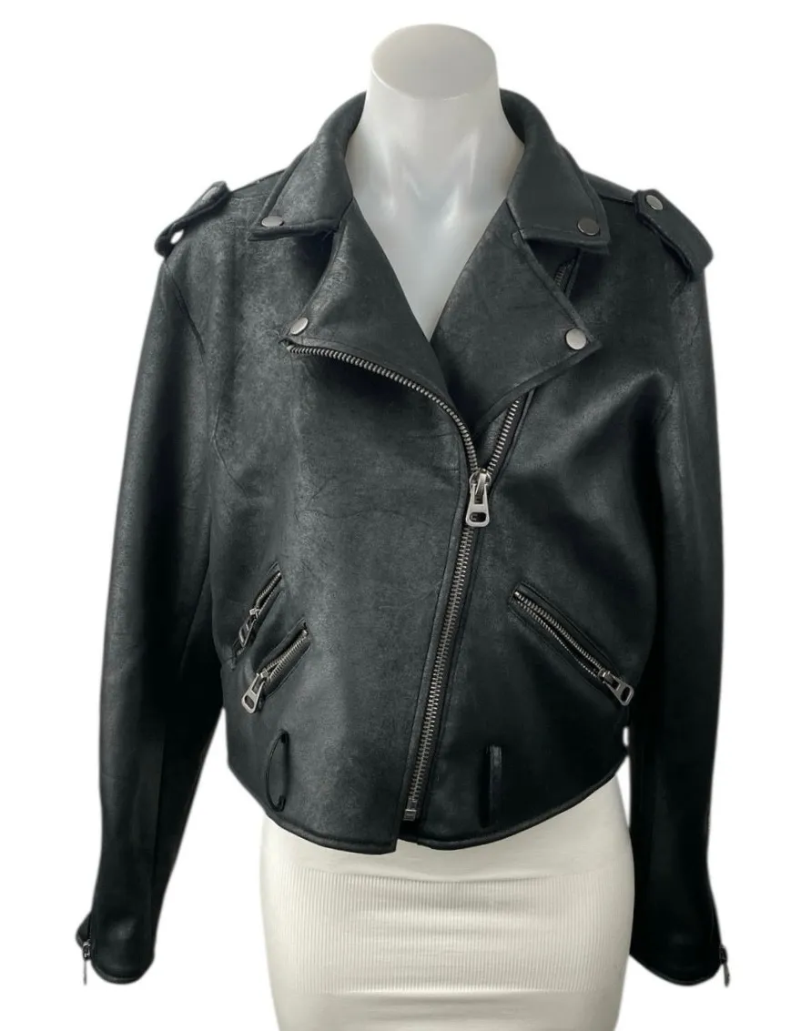 Velvet Heart Black Faux Vegan Leather Asymmetric Zip Moto Biker Crop Jacket Size M Size: M Conditio... Show more