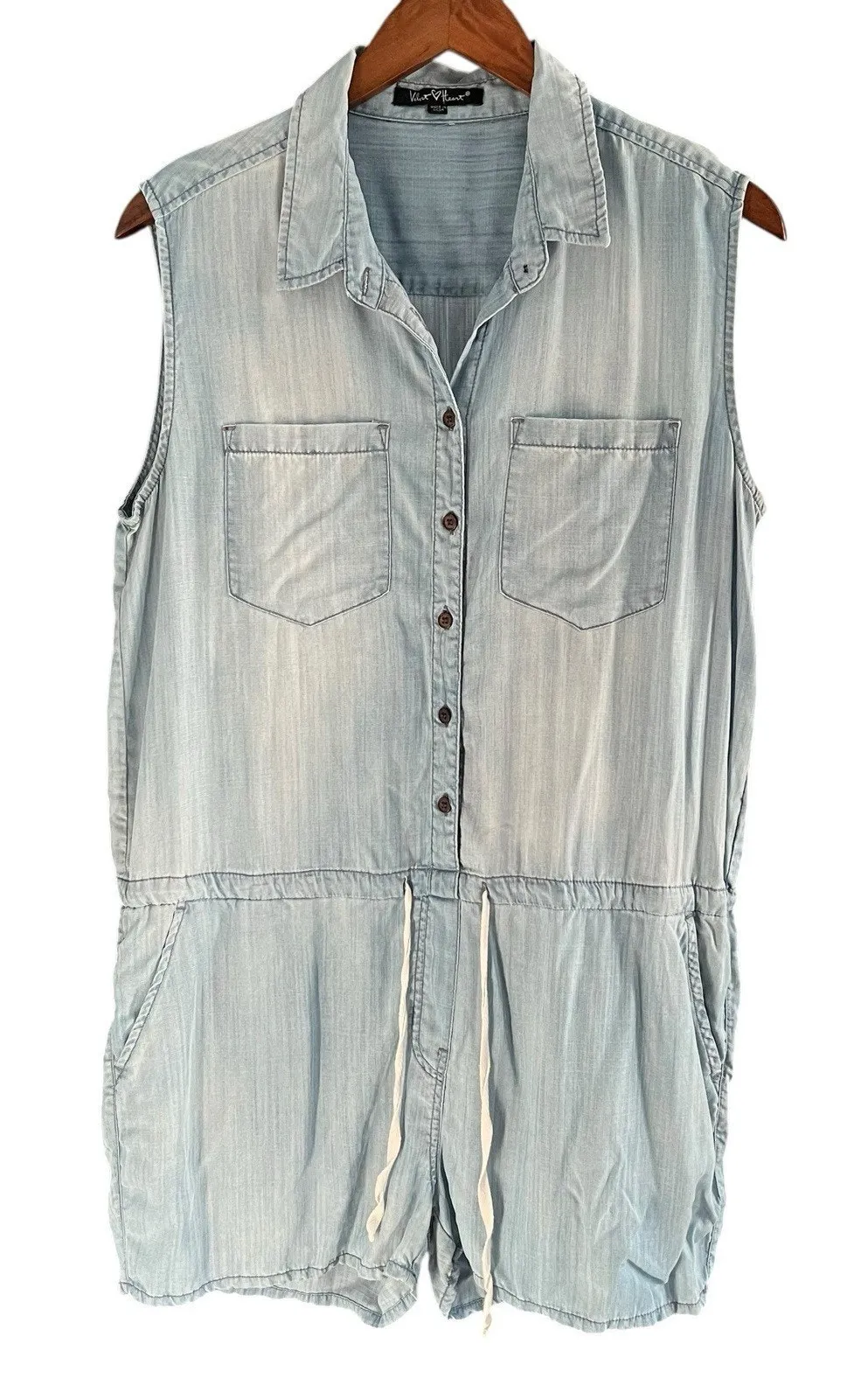 Velvet Heart Chambray Romper Button front closure Sleeveless Drawstring Waist 2 breast pockets 2 hi... Show more
