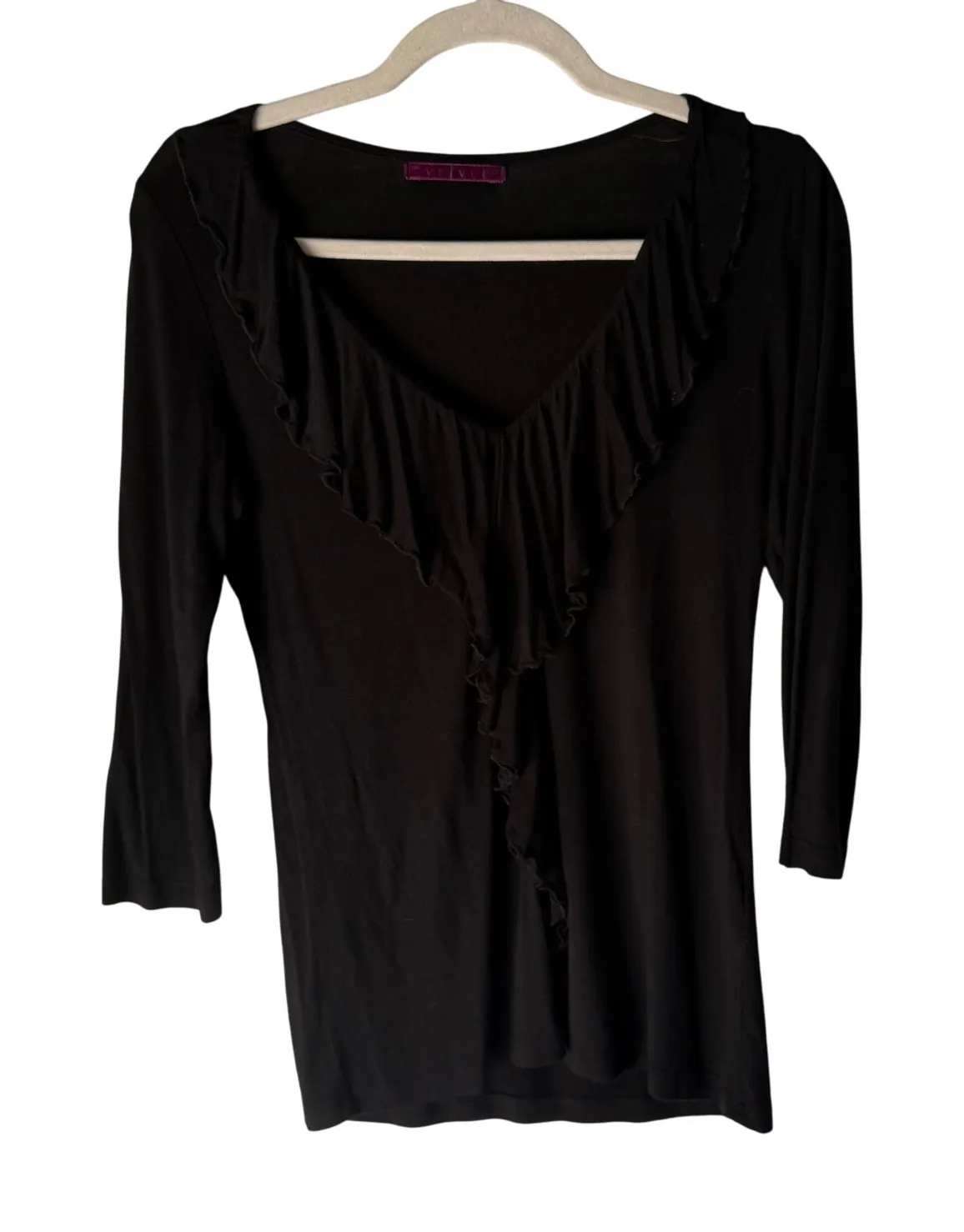 Velvet P Y2k Long Sleeve Black Ruffle V Neck Top Made In USA Medium Whimsigoth Type: Blouse Depart... Show more