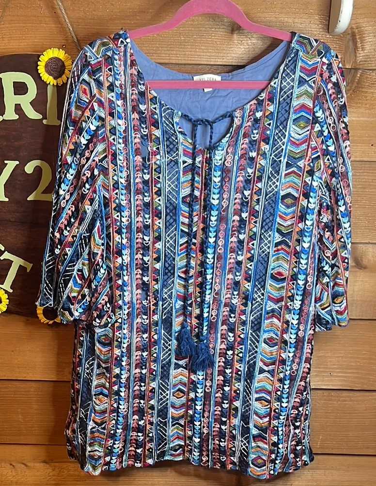 Brand: Velzera Description: 100% cotton and fully lined. Adorable boutique dress / tunic with boho... Show more